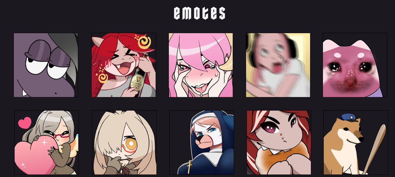 Emotes start at 15$ each or 10$ per frame for animated emotes.